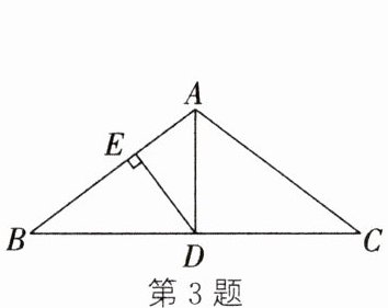3. 如图,在△ABC中,AB=AC=10,BC=16,D为BC的中点,DE⊥AB于点E,则DE的长为(