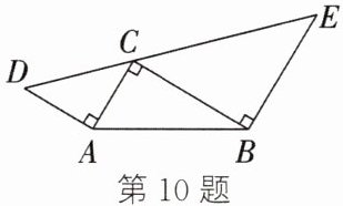 10. 如图,在Rt△ABC中,∠ACB=90°,AB=5,分别以AC,BC为直角边作等腰直角三角形ACD和等腰直角三角形BCE.若△ACD的面积为$S_{1}$,△BCE的面积为$S_{2}$,则$S_{1}+S_{2}=$