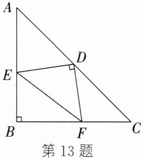 13. 如图,在等腰直角三角形ABC中,∠ABC=90°,D为边AC的中点,过点D作DE⊥DF,DE交AB于点E,DF交BC于点F,连接EF.若AE=4,FC=3,求EF的长.