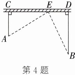 4. 如图,在笔直的公路旁边有A,B两个村庄,村庄A到公路的距离AC=8km,村庄B到公路的距离BD=14km,测得C,D两点之间的距离为20km.现要在C,D两点之间建一个服务区E,使得A,B两个村庄到服务区E的距离相等,求CE的长.