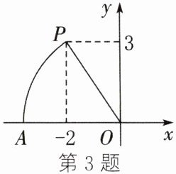3. 如图,在平面直角坐标系中,点 $P$ 的坐标为 $(-2,3)$,以点 $O$ 为圆心,$OP$ 的长为半径画弧,交 $x$ 轴的负半轴于点 $A$,则点 $A$ 的横坐标在(