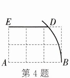 4. 如图,网格中每个小正方形的边长均为 $1$,$A$,$B$,$E$ 均为格点,以点 $A$ 为圆心,$AB$ 的长为半径画弧,交网格线于点 $D$,那么 $ED$ 的长为