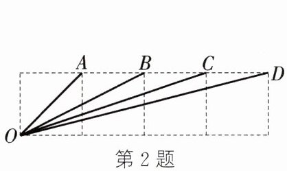 $OA$:横向1格,纵向1格,长度为$\sqrt{1^2 + 1^2} = \sqrt{2}$;