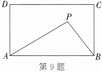 9. 如图,在长方形 $ABCD$ 中,$AB = 5$,$AD = 3$,动点 $P$ 满足 $S_{\triangle PAB}=\frac{1}{3}S_{长方形ABCD}$,则点 $P$ 到 $A$,$B$ 两点的距离之和 $(PA + PB)$ 的最小值为