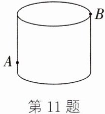 11.如图,将圆柱的侧面展开成长方形,则长方形的长为圆柱的底面圆的周长,即为24m,记点A正下方的顶点为C,正上方的顶点为E.由题意,得$EC = 6m$,$AC = 1m$,$EB=\frac{24}{2}=12(m)$.