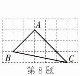 8. 如图,在正方形网格中,每个小正方形的边长均为 $1$,$\triangle ABC$ 的顶点都在正方形网格的格点上,这样的三角形称为格点三角形,则点 $A$ 到边 $BC$ 的距离为