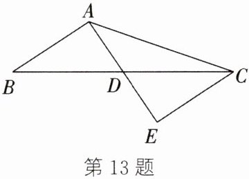 13. 如图,在△ABC 中,AB = 3,AC = 5,边 BC 上的中线 AD = 2,延长 AD 到点 E,使 ED = AD,连接 CE.