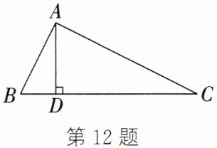 12. 如图,在△ABC 中,AD⊥BC,垂足为 D,AD = 4,BD = 2,CD = 8.