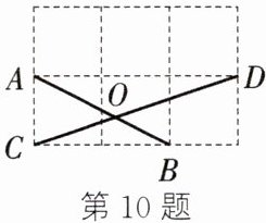 10. 在如图所示的 3×2 的网格中,每个小正方形的顶点称为格点,点 A,B,C,D 均在格点上,线段 AB,CD 交于点 O,则∠BOD 的度数为