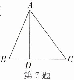 7. 如图所示为一块三角形土地ABC,在BC上有一处古建筑D,使得BC的长不能直接测出.若$AB = 130m$,$AD = 120m$,$BD = 50m$,$AC = 150m$,则BC的长为(