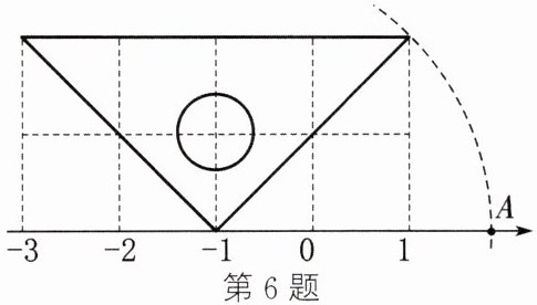6. 如图,把一块含$45^{\circ}$角的三角板放入网格中,三角板三个顶点均在格点上,直角顶点与数轴上表示$-1$的点重合,则数轴上点$A$所表示的数为