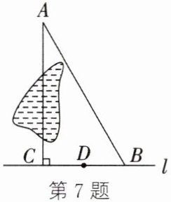 7. 如图,某村庄$A$与公路$l$之间有一池塘,村民出行都走$AB$这条村级公路。在美丽乡村建设过程中,为了便于村民出行,村委会治理了池塘并在村庄$A$到公路$l$之间架桥,新修了一条公路$AC$,且$AC⊥ l$,测得$CB = 2\sqrt{2}$km,$AB = 4\sqrt{2}$km。