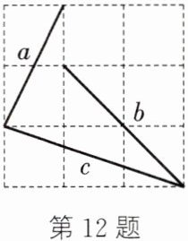 12. 如图,$a$,$b$,$c$是$3×3$的正方形网格中的$3$条线段,它们的端点都在格点上,则$a$,$b$,$c$的大小关系是(