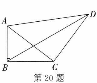 20. 如图,在四边形$ABCD$中,$\angle ABC = 90^{\circ}$,$AB = 3$,$BC = 4$,$CD = 5$,$AD = 5\sqrt{2}$,则$BD$的长为