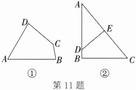 答案:11. (1)140° (2)四边形DBCE是“等对角四边形” 理由:在△ABC中,∠B=90°,∠A=40°,