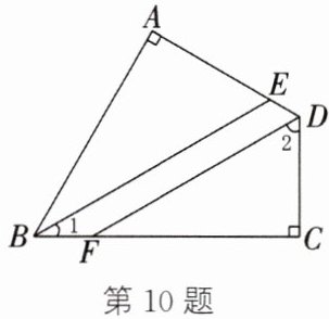 10. 如图,在四边形 $ABCD$ 中,$\angle A=\angle C = 90^{\circ}$,$BE$,$DF$ 分别是 $\angle ABC$,$\angle ADC$ 的平分线.