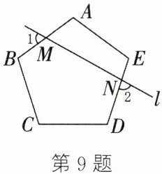 9. (2025·眉山)如图,直线$l$与正五边形$ABCDE$的边$AB,DE$分别交于点$M,N$,则$\angle 1+\angle 2$的度数为(
