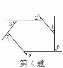 4. 如图,$\angle 1,\angle 2,\angle 3,\angle 4,\angle 5,\angle 6$是六边形的外角.若$\angle 2+\angle 3+\angle 4+\angle 5+\angle 6 = 320^{\circ}$,则$\angle 1$的度数为(