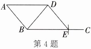 4. 如图,$AD// BC$,$AB = BD$,以点 $B$ 为圆心,$AD$ 长为半径画弧,交射线 $BC$ 于点 $E$,连接 $DE$。若 $\angle BED = 50^{\circ}$,则 $\angle DBC$ 的度数为