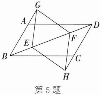 5. 如图,在 $□ ABCD$ 中,$E$,$F$ 是对角线 $BD$ 上的两点,$BE = DF$,点 $G$,$H$ 分别在 $BA$ 和 $DC$ 的延长线上,且 $AG = CH$,连接 $GE$,$EH$,$HF$,$FG$。求证: