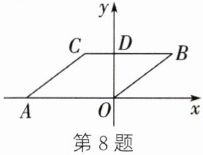 8. 如图,将 $□ AOBC$ 放在平面直角坐标系中,$O$ 为坐标原点,边 $AO$ 与 $x$ 轴重合,边 $BC$ 与 $y$ 轴正半轴相交于点 $D$. 若 $OA = 6$,$OB = 5$,且 $OD:BD = 3:4$,则点 $C$ 的坐标为