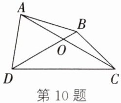 10. 如图,在四边形 $ABCD$ 中,对角线 $AC$ 和 $BD$ 相交于点 $O$,且 $\angle DOC = 120^{\circ}$,$AC = 6$,$BD = 4$,则 $AD + BC$ 的最小值是