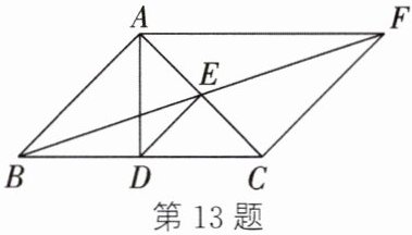 13. 如图,$AD$,$BE$ 分别是 $\triangle ABC$ 的边 $BC$,$AC$ 上的中线,过点 $C$ 作 $CF// AB$,交 $BE$ 的延长线于点 $F$,连接 $AF$.