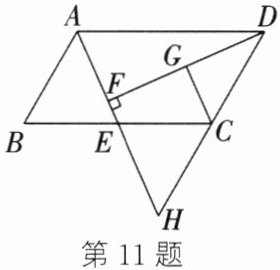 11. 如图,在 $□ ABCD$ 中,$E$ 为边 $BC$ 的中点,$DF⊥ AE$ 于点 $F$,$G$ 为 $DF$ 的中点,连接 $CG$,分别延长 $AE$,$DC$ 交于点 $H$. 求证:$CG⊥ DF$.