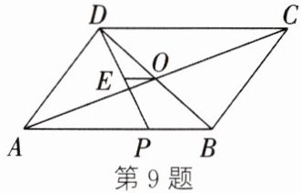 9. 如图,$□ ABCD$ 的对角线 $AC$,$BD$ 相交于点 $O$,$\angle ADC$ 的平分线 $DP$ 与边 $AB$ 相交于点 $P$,$E$ 是 $PD$ 的中点,连接 $OE$. 若 $AD = 4$,$CD = 6$,则 $EO$ 的长为