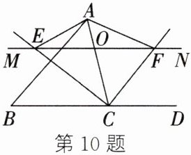 10. 如图,在△ABC 中,O 是边 AC 上一个动点,过点 O 作直线 MN//BC,MN 交∠ACB 的平分线于点 E,交△ABC 的外角∠ACD 的平分线于点 F,连接 AE,AF.