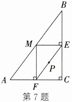 7. 如图,在 Rt△ABC 中,∠ACB=90°,AC=3,BC=4,M 是边 AB 上一点(不与点 A,B 重合),过点 M 作 ME⊥BC 于点 E,MF⊥AC 于点 F,连接 EF. 若 P 是 EF 的中点,则 PF 长的最小值是 (