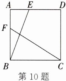 10. 如图,在边长为4的正方形 $ABCD$ 中,$E$,$F$ 分别为边 $AD$,$AB$ 上的点,连接 $BE$,$CF$。若 $DE = BF$,则 $BE + CF$ 的最小值是