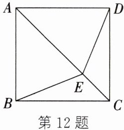 12. (新考法·探究题)如图,在正方形 $ABCD$ 中,$E$ 为对角线 $AC$ 上一点 $(AE > CE)$,连接 $BE$,$DE$。