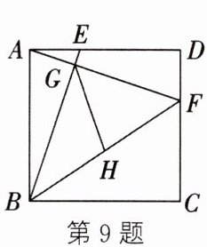 9. 如图,正方形 $ABCD$ 的边长为6,点 $E$,$F$ 分别在 $AD$,$DC$ 上,$AE = DF = 2$,$BE$ 与 $AF$ 相交于点 $G$,$H$ 为 $BF$ 的中点,连接 $GH$,则 $GH$ 的长为