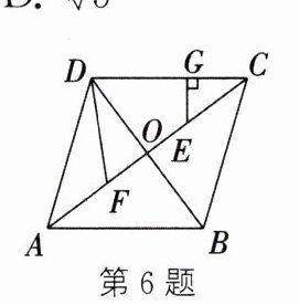 6. 如图,菱形 $ABCD$ 的对角线 $AC$,$BD$ 相交于点 $O$,点 $E$,$F$ 在对角线 $AC$ 上,且 $AF = CE$,过点 $E$ 作 $CD$ 的垂线,与边 $CD$ 交于点 $G$,连接 $DF$.若 $AC = 8$,$BD = 6$,则 $EG + DF$ 的最小值为