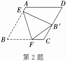 2. 如图,在菱形 $ABCD$ 中,$AB = 2$,$\angle BAD = 120^{\circ}$,$E$,$F$ 分别是边 $AB$,$BC$ 上的动点,沿 $EF$ 折叠 $\triangle BEF$,使点 $B$ 的对应点 $B'$ 始终落在边 $CD$ 上,则 $A$,$E$ 两点之间的最大距离为