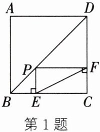 1. 如图,正方形 $ABCD$ 的边长为 $2\sqrt{2}$,$P$ 为对角线 $BD$ 上一动点,过点 $P$ 作 $PE ⊥ BC$ 于点 $E$,$PF ⊥ CD$ 于点 $F$,连接 $EF$,则 $EF$ 长的最小值为 (