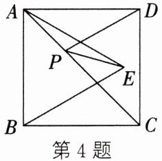 4. 如图,正方形 $ABCD$ 的面积为 $12$,$\triangle ABE$ 是等边三角形,点 $E$ 在正方形 $ABCD$ 内,在对角线 $AC$ 上有一点 $P$,连接 $PD$,$PE$,则 $PD + PE$ 的最小值为 (