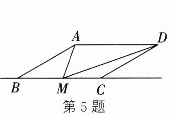 5. (2024·广安)如图,在 $□ ABCD$ 中,$AB = 4$,$AD = 5$,$\angle ABC = 30^{\circ}$,$M$ 为直线 $BC$ 上一动点,则 $MA + MD$ 的最小值为