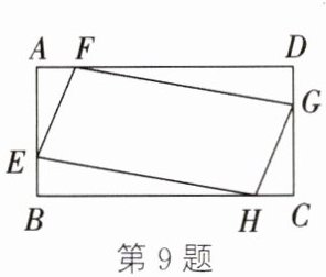 9. 如图,在矩形 $ABCD$ 中,$AB = 5$,$AD = 10$,点 $E$,$F$,$G$,$H$ 分别在矩形各边上,$F$,$H$ 为不动点,$E$,$G$ 为动点.若使 $AF = CH$,$BE = DG$,则四边形 $EFGH$ 的周长的最小值为 (