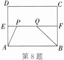 8. 如图,在矩形 $ABCD$ 中,$AB = 5$,$BC = 4$,$E$,$F$ 分别是 $AD$,$BC$ 的中点,点 $P$,$Q$ 在 $EF$ 上,且满足 $PQ = 2$,则四边形 $APQB$ 的周长的最小值为 (