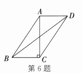 6. 如图,在 $□ ABCD$ 中,$AB = 2\sqrt{13}$ cm,$AD = 4$ cm,$AC⊥ BC$,则 $\triangle DBC$ 的周长比 $\triangle ABC$ 的周长多