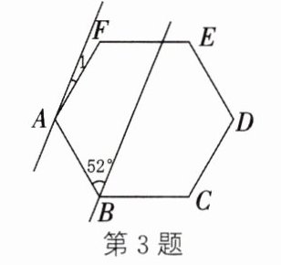 3. 如图,一束平行光线照射到正六边形 $ABCDEF$ 上,光线恰好过点 $A$,$B$,则 $\angle 1$ 的度数为