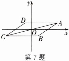 7. 如图,坐标原点 $O$ 为 $□ ABCD$ 的对角线 $AC$ 的中点,顶点 $A$ 的横坐标为 $4$,$AD// x$ 轴,且 $AD$ 的长为 $5$. 若 $□ ABCD$ 的面积为 $10$,则顶点 $B$ 的坐标为