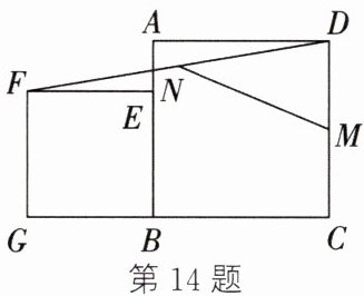 14. 如图,点 $E$ 在正方形 $ABCD$ 的边 $AB$ 上,以 $BE$ 为边向正方形 $ABCD$ 外部作正方形 $BEFG$,连接 $DF$,$M$,$N$ 分别是 $DC$,$DF$ 的中点,连接 $MN$. 若 $AB = 7$,$BE = 5$,则 $MN =$
