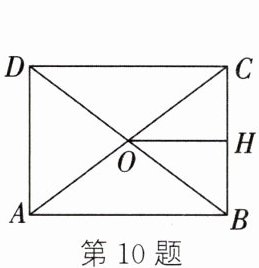 10. (2025·内蒙古)如图,$ABCD$ 是一个矩形草坪,对角线 $AC$,$BD$ 相交于点 $O$,$H$ 是 $BC$ 边的中点,连接 $OH$,且 $OH = 20$ m,$AD = 30$ m,则该草坪的面积为(
