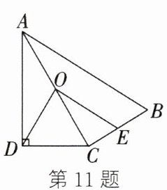 11. 如图,在四边形 $ABCD$ 中,$\angle ADC = 90^{\circ}$,连接 $AC$,$\angle DAC = 30^{\circ}$,取 $AC$ 的中点 $O$,$BC$ 的中点 $E$,连接 $OD$,$OE$,$\angle DOE = 88^{\circ}$,则 $\angle CAB$ 的度数为(