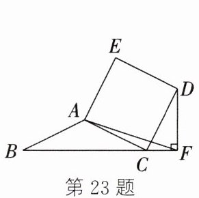 23. 如图,在 $\triangle ABC$ 中,$AB = AC = \sqrt{5}$,$BC = 4$,以 $AC$ 为边作正方形 $ACDE$,过点 $D$ 作 $DF⊥ BC$,交 $BC$ 的延长线于点 $F$,连接 $AF$,则 $AF$ 的长为