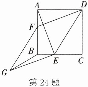 24. 如图,在正方形 $ABCD$ 中,$AB = 1$,$E$ 是边 $BC$ 上的动点(点 $E$ 可以与点 $B$,$C$ 重合),连接 $DE$,$AE$,过点 $D$ 作 $AE$ 的垂线,交线段 $AB$ 于点 $F$,以 $DF$,$DE$ 为邻边构造 $□ DFGE$,连接 $BG$,则 $BG$ 长的最小值为