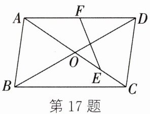 17. 如图,在 $□ ABCD$ 中,$AC$,$BD$ 相交于点 $O$,$BD = 2CD$,$F$ 为 $AD$ 的中点,$E$ 为 $OC$ 的中点. 若 $BC = 15$,则 $EF$ 的长为(